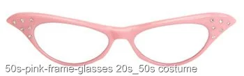 Pink Cat Eye GlassesYou’ll be ready for the sock hop or the school dance with these cat eye glasses! The plastic costume accessory has a pink frame with rhinestones fastened in the front. Perfect with any of our Pink Ladies or poodle skirt costumes!