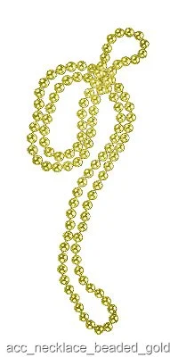 60” flapper necklace made of golden, plastic beads.Add glimmer and glitz to your flapper costume with this gold beaded necklace. The accessory is made of small, plastic beads and is immediately ready to slip on at your convenience. This necklace is a great addition to give any costume an extra flare.