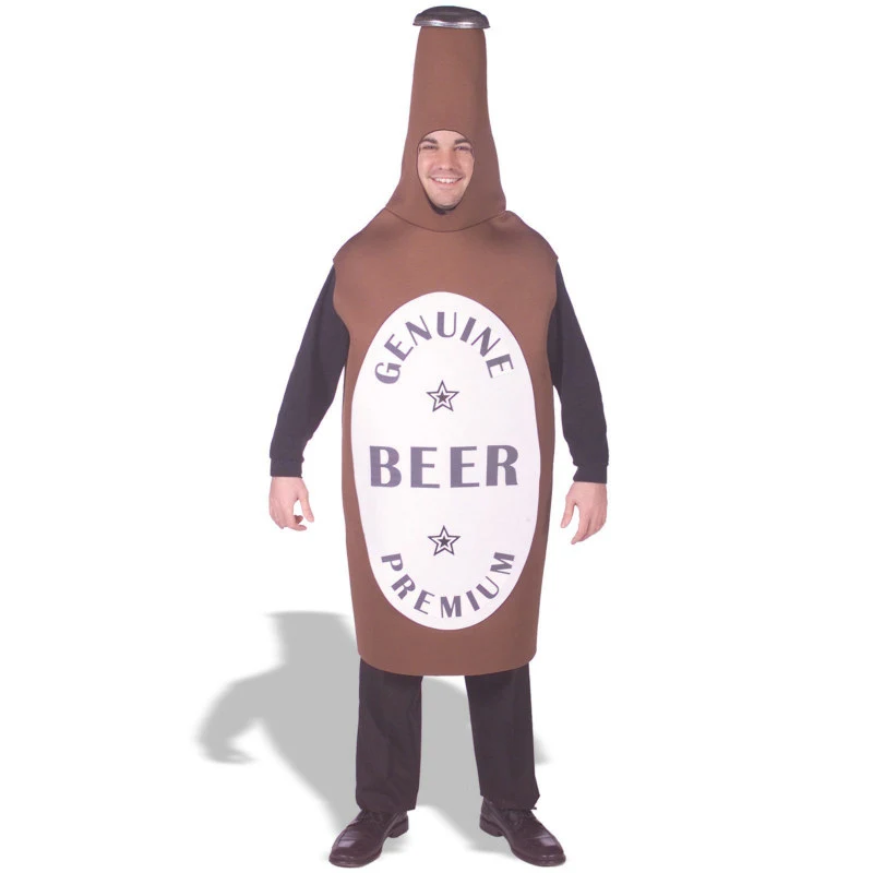 Includes: a fabric beer bottle shaped bodysuit with printed label, and openings for your arms and face. Available in one size fits most adults, sizes Large/X-Large.