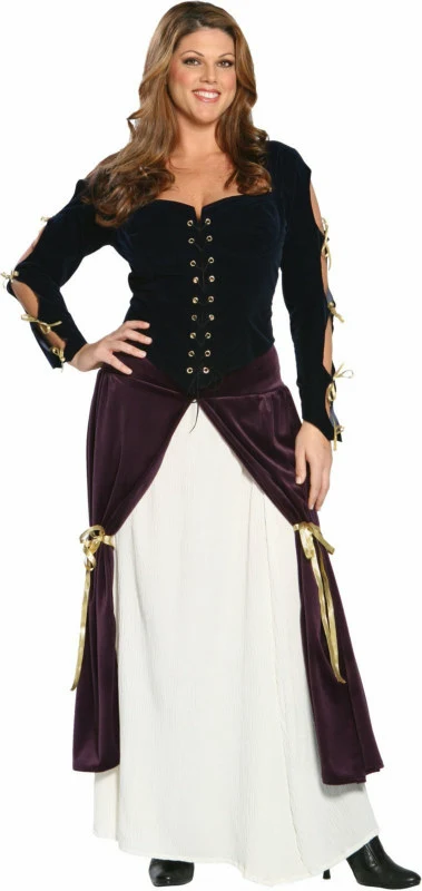 Stand behind your man as you two Musketeers fight off the ghouls of Halloween. You’re sure to be the center of attention when you walk into your next Halloween or costume party dressed as Lady Musketeer. Includes a Faux suede top with cut out sleeves, full-length peasant skirt with overlay and adjustable tie back ribbons.