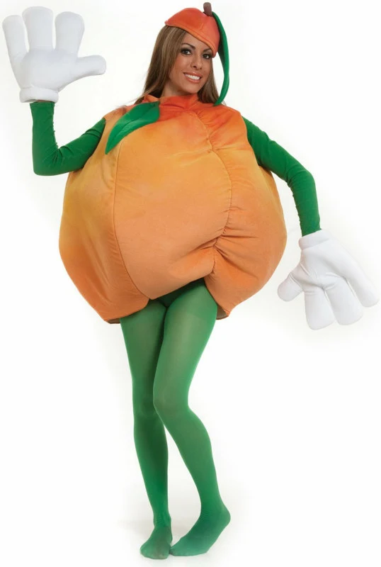 Great for promoting healthy eating on stage of just for fun this Halloween! This great costume includes a fluffy peach colored tunic and a peach hat that features a cool brown stem and green leaf.
