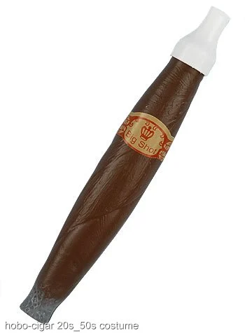 Plastic CigarThis plastic cigar is a cheap costume prop that will get laughs this Halloween! The brown cigar measures almost 9″ long and features a “Big Shot” sticker. It is brown with grey accents on the end for the appearance of a used cigar. Add this funny accessory to your gangster or pimp costume!