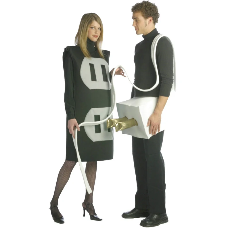 Includes: Black and Gray socket costume AND White plug costume with cord. These costumes are made of a lightweight durable fabric over Denur foam. Plug will fit into socket costume! Sure to be a hit at any party! Available in one size fits most adults, sizes Large/X-Large.