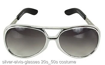SunglassesThese silver Elvis glasses will block out the bright lights up on stage when you’re rocking out at your next theme or Halloween party! They have a thick, silver frame that crosses over the nose twice. The sides have circle cutouts that get smaller closer to the edge. The UV 400 lens are large and round with a dark tint. These sunglasses are a great accessory for our Elvis Presley costumes or any of our 50s costumes!