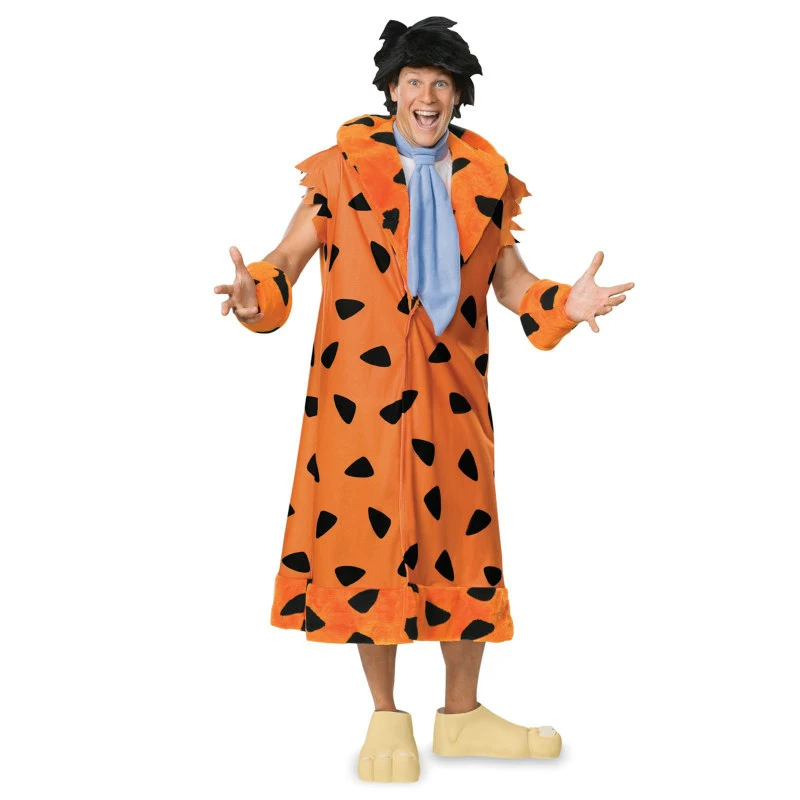 Here he is, Bedrock’s favorite caveman, Fred Flintstone. Includes: Signature orange with black coat with attached collar, matching cuffs, blue necktie, black wig and bare feet shoe covers.
