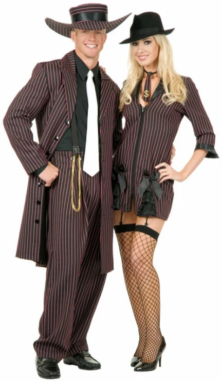 And maybe chase a little tail while rockin’ the Zoot Suit costume, which includes a black and salmon pin-striped suit coat with matching pants. Suspenders and gold chain complete this jazzy man’s ensemble. But be careful, things might get a little wild in this old school style.